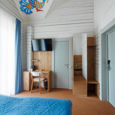 Номерной фонд Эко-отеля составляет 22 дома с верандами и площадками для барбекю и 6 номеров, которые располагаются в главном здании отеля. Семь разноцветных домиков уютно разместились на холме в тишине березовой рощи. Четыре больших дома расположились на Сказочной горе у берега озера. Под горой спрятался необычный и интересный для взрослых и детей Дом Хоббита, 10 ярких домиков открылись на поляне.