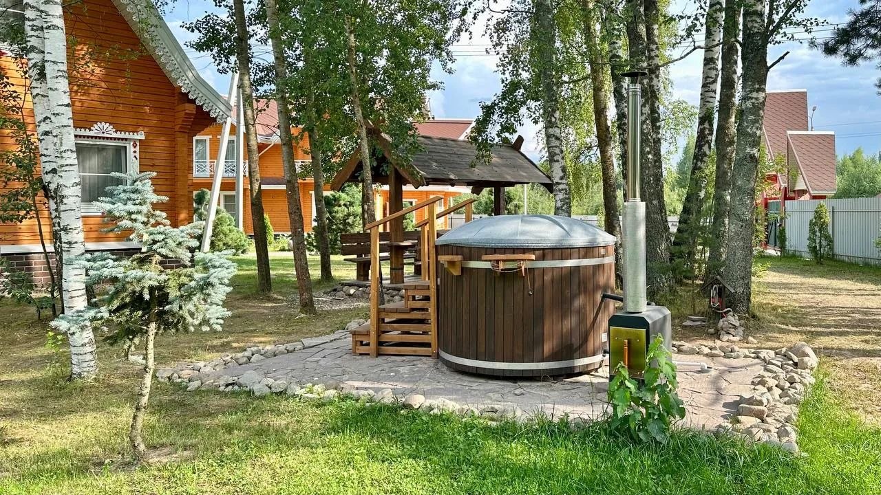 Комфортабельный коттедж «Дом-студия» 38 м. кв. для удобного проживания и отдыха 2 взрослых и 2 детей до 16 лет с панорамными окнами, верандой, площадкой для барбекю, бочкой Фурако!