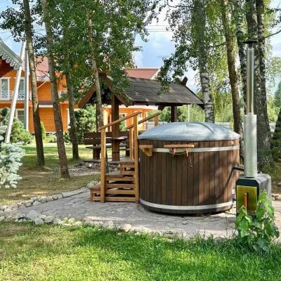 Большой двухэтажный коттедж 135 м.кв для комфортного размещения 8-10 человек с большой гостиной и площадкой для барбекю.